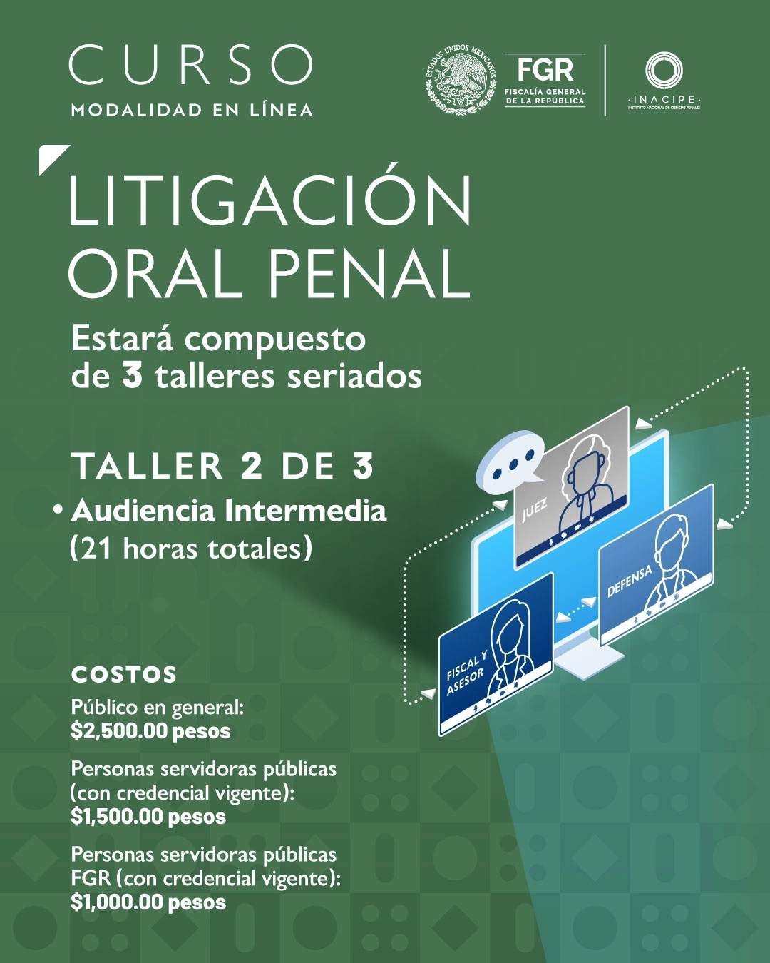 - 2. E-learning: Curso en Aula virtual con materiales audiovisuales pregrabados, donde el estudiante aprende de una manera autodidacta. Incluye sesiones de chat en vivo, en donde los alumnos resuelven dudas con las y los profesores, propiciando la retroalimentación.